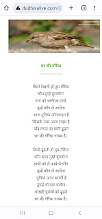 विश्व गौरैया दिवस 20 मार्च पर कविता :