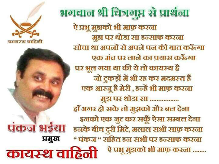 जय हो कायस्थ शिरोमणि कायस्थ कुलभूषण कायस्थ रत्न गुरूदेव वाहिनी प्रमुख की।